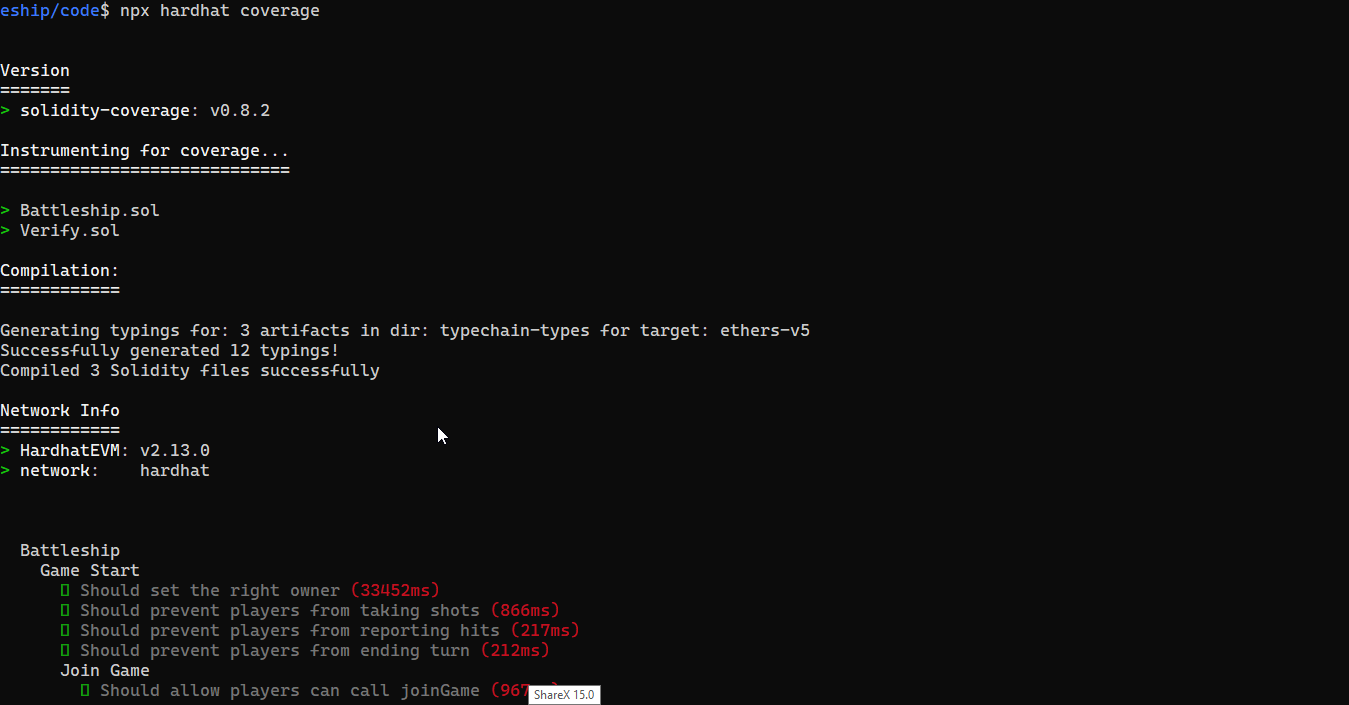 • Provides a complete Solidity contract and tests with Hardhat for a two-player Battleship match.